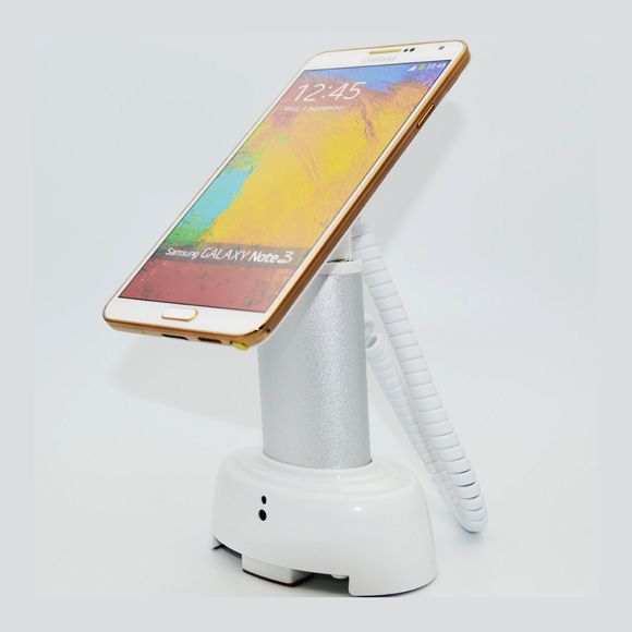 This is a single security display holder specially designed for moble phones. It has built-in lithium plate, high-decibel alarm, a wireless Bluetooth alarm code lift design and work and alarm status light indicator, thus will make your exhibit more secure.